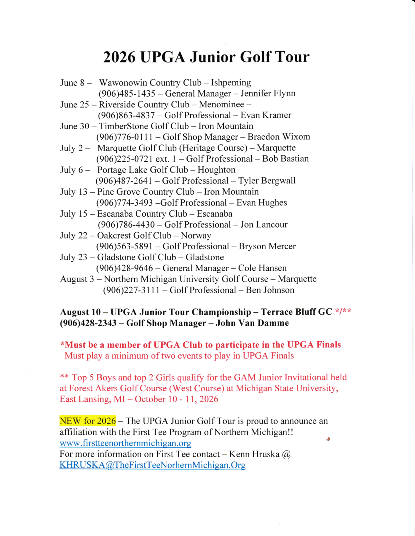 Click to print the 2026 UPGA Junior Tour Schedule (pdf)
